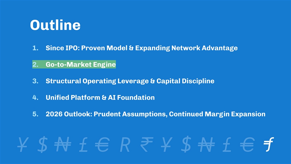 Outline 1. Since IPO: Proven Model & Expanding Network Advantage 2. Go-to-Market Engine 3. Structural Operating Leverage & Capital Discipline 4. Unified Platform & AI Foundation 5. 2026 Outlook