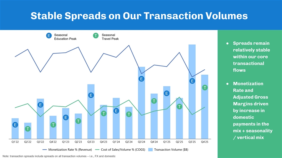 Key Operating Metrics (Non-GAAP) Q4 2025 $9.3B $152.7M $93.7M $25.4M 1 1 1 1 +35.6% YoY +35.3% YoY 23.4% YoY 53.4% YoY 2 2 16.6% 61.3% Total Revenue Less Adjusted Adjusted EBITDA Payment Ancillary Gross Profit Volume Services 1. Represents Y-o-Y Growth as compared to Q424 2. Represents Margins as % of RLAS (Revenue Less Ancillary Services) See Appendix for reconciliation to GAAP amounts