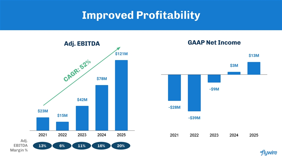 Improved Profitability GAAP Net Income Adj. EBITDA Adj. EBITDA 13% 6% 11% 16% 20% Margin % CAGR: 52%